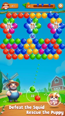 Bubble Shooter: Puppy Rescue vás zve na roztomilé dobrodružství. Pomozte farmáři a štěňátkům zachránit malé kamarády z barevných bublin. Projděte náročnými úrovněmi a osvoboďte co nejvíce štěňat v této zábavné hře.