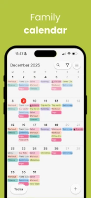 Motivujte celou rodinu k plnění úkolů a dosažení společných cílů. Vytvářejte úkoly, za něž členové získávají body, které směňují za odměny, čímž efektivně řídíte domácí povinnosti. Sledujte pokrok v přehledném grafu a oslavujte dosažené milníky. Každý člen domácnosti může mít svůj vlastní denní rozvrh s dělením na týdny A a B, a přehledné zobrazení harmonogramů zajistí, že nikdo nebude v prodlení. Díky praktickým widgetům získáte rychlý přístup k oblíbeným funkcím přímo z domovské obrazovky. Pro okamžitou komunikaci s rodinou slouží rodinný chat (dostupný prémiovým uživatelům) a důležité kontakty naleznete vždy pohromadě. Prémiové předplatné FAMILY CALENDAR odemyká všechny pokročilé funkce a odstraňuje reklamy. Jediná platba zajistí prémiový přístup pro celou vaši domácnost.