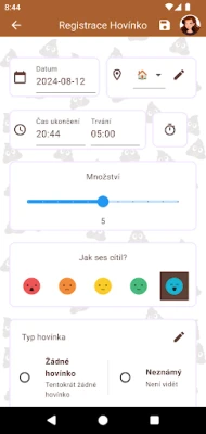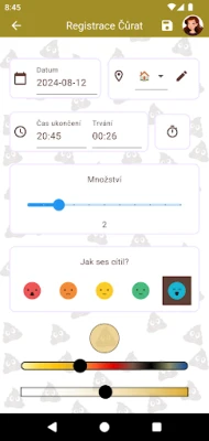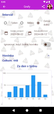Šťastný Hovínko vám umožňuje pečlivě monitorovat každý aspekt vaší stolice. Využijte ověřenou Bristolskou stupnici k přesné klasifikaci a zaznamenávejte důležité detaily, jako je doba trvání, objem, barva nebo konzistence. Přidejte si personalizované poznámky či diskrétní fotografie, které vám pomohou sledovat vývoj. Na základě vašich záznamů aplikace generuje přehledné grafy, které vizualizují trendy a vzorce ve vašem zažívání. Snadno tak identifikujete, jaké stravovací návyky nebo životní styl ovlivňují váš trávicí systém, ať už se potýkáte se zácpou nebo průjmem.