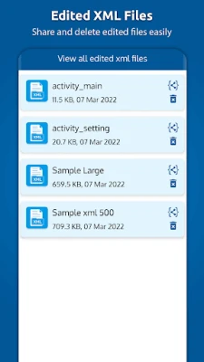 Posuňte své dovednosti v psaní kódu na novou úroveň s pokročilými editačními funkcemi, které **XML Viewer** nabízí. Psaní a úpravy XML kódu nikdy nebyly snazší díky nástrojům jako je zvýrazňování syntaxe, barevné kódování, navigace po řádcích a nezbytné funkce zpět/vpřed. Tyto prvky zajistí, že váš kód bude přehledný, správný a snadno spravovatelný. Navíc si můžete pracovní prostředí přizpůsobit výběrem z rozmanité nabídky editorových témat, což vám umožní pracovat v prostředí, které je pro vás vizuálně nejpříjemnější a nejproduktivnější. Prohlédněte si všechny uložené a upravené soubory v jednom přehledném místě.